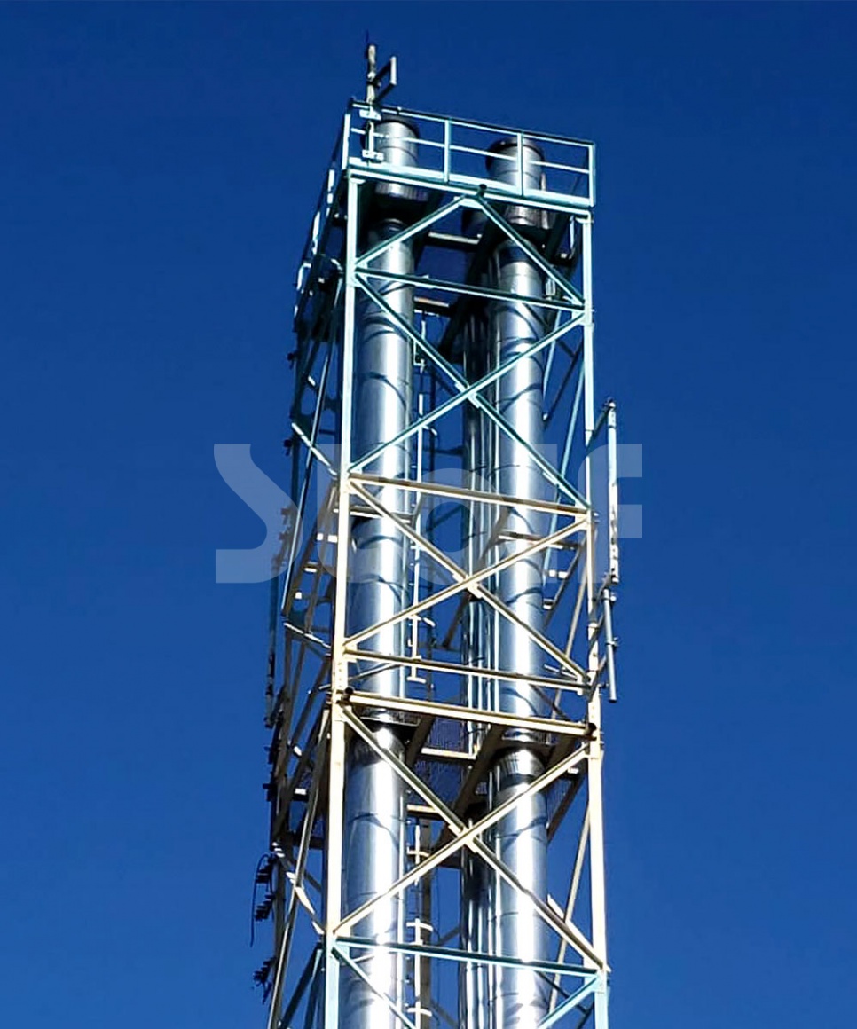Состоит из 2 газоходов диаметром 750 мм. Внутренняя поверхность газоходов изготовлена из стали AISI 316 толщиной 0,8 мм, наружная — из оцинкованной стали с полимерным покрытием толщиной 0,7 мм. Теплоизоляция выполнена из минеральной ваты «ROCKWOOL WIRED MAT 50» толщиной 50 мм.
